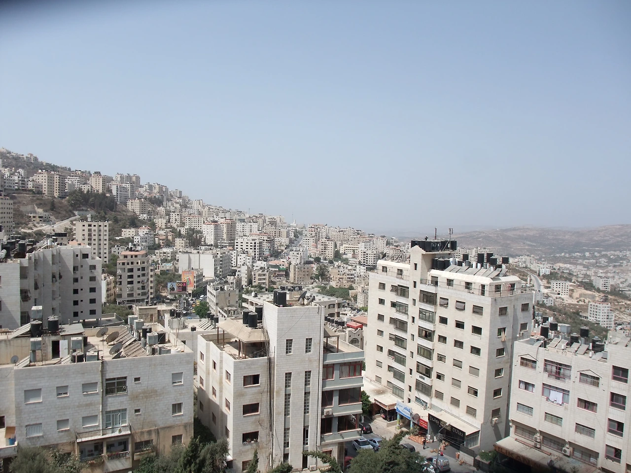 사진. 나블루스의 전경. 나블루스는 2천 년 전에 로마 제국이 건설한 도시로, 팔레스타인 북부지역의 중심지다. 빼곡히 늘어선 건물들은 도시 느낌을 물씬 풍긴다.