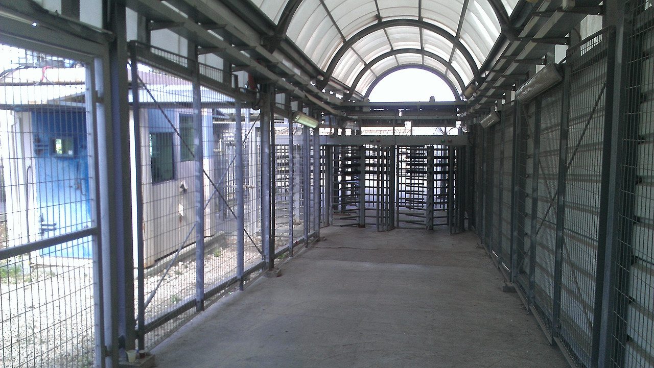 장벽을 따라 걸으며 마침내 행인용 검문소에 도착했다. 꽉 막힌 도로를 보고 걱정했으나 다행히 한산했다. 칠이 벗겨져 잔뜩 녹이 슨 회전문을 통과해 들어가니 여러 개의 검문 창구 중 하나만 열려 있고 10여 명이 줄을 서서 기다리고 있었다. 주위에는 담배꽁초와 쓰레기들이 버려져 있고 공기는 탁했다. 어디서나 활발한 팔레스타인 사람들이지만 여기서는 다들 조용해지곤 한다.