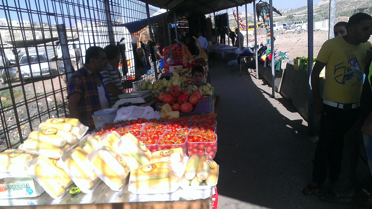 사진 13. 툴카렘 인근 검문소. 검문소 통행에 소요되는 시간이 길다 보니 시장이 형성되었다.