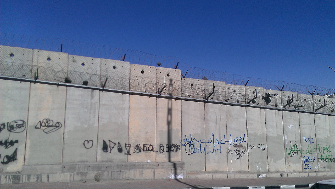 검문소에 도착하니 8-9m 높이의 거대한 콘크리트 벽이 나타났다. 이스라엘이 밀입국과 무기 밀수를 통제한다는 목적으로 팔레스타인 전 지역에 세우고 있는 “보안장벽”(Security barrier)이다. 책이나 언론에서는 콘크리트 벽만 보여주지만, 서안지구에 있는 장벽의 대부분은 철조망이고 약 10%만이 콘크리트 벽으로 건설되고 있다. 가자지구에는 1996년에 장벽 건설이 완료되었으나 지하 터널을 막기 위해 2016년부터 장벽을 깊게 설치하는 재공사를 하고 있다. 2021년 12월 현재, 이스라엘은 완공을 선언했다.