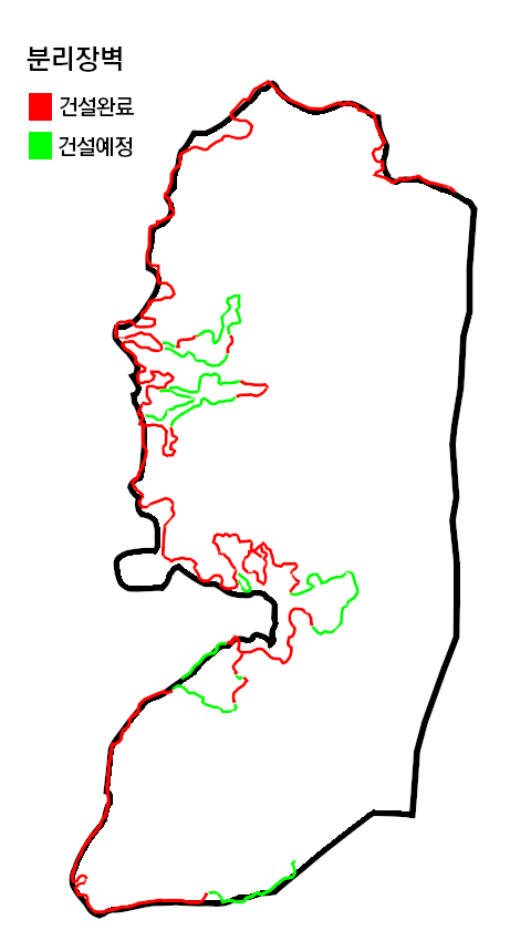2004년에 국제사법재판소(International Court of Justice, ICJ)는 서안지구 내부에 장벽을 짓는 것은 국제법에 위반되며 이미 완성된 장벽은 철거해야 한다는 권고적 의견(advisory opinion)을 내놓았다. 그러나 이스라엘은 꾸준히 건설을 계속해 2016년 현재 64%를 완성했다.(3)