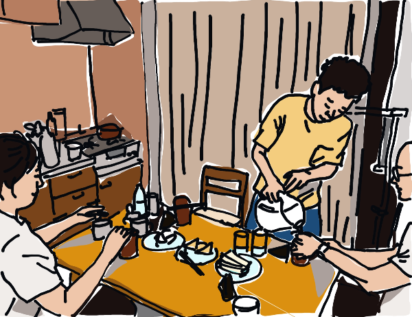 아침은 어제저녁에 마트에서 사 온 라면, 삼각김밥, 그리고 커피와 우유 등 음료. 작은 부엌에서 친구들과 소꿉장난하듯이 밥을 먹는 게 왜 이렇게 재미있는지 ㅎㅎ.