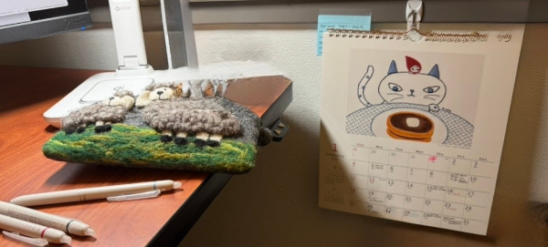 예쁜 걸 기가 막히게 잘 찾는 동생이 골라 하나씩 나눠가진 빨간 모자 아가씨 달력은 사무실에 뒀다. 일할 때 기분이 좋아짐.