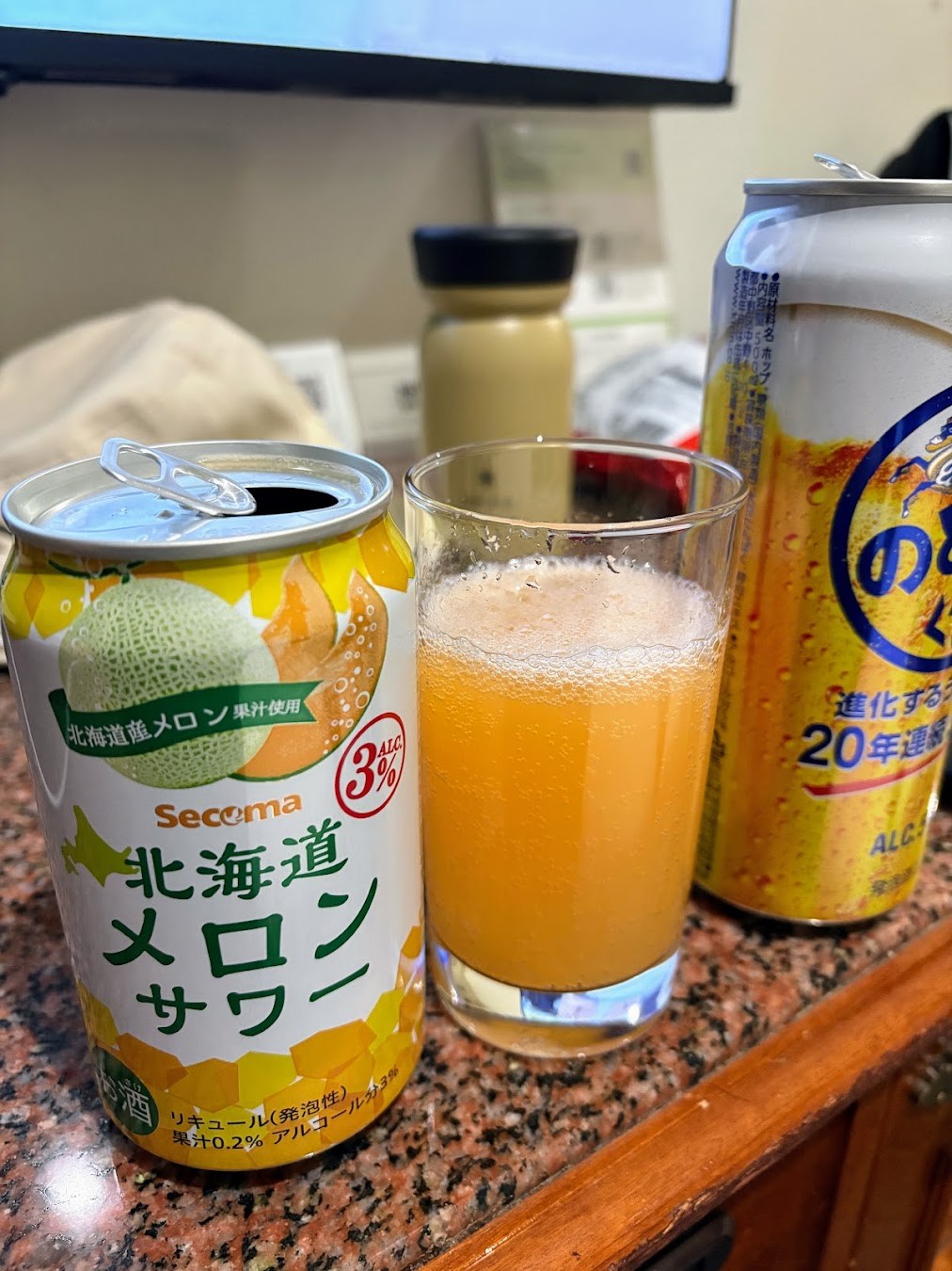 '홋카이도 멜론 사와'. サワー(사와)는 칵테일 'sour'를 일본식으로 부르는 이름인 것 같다. 달달하고 주스 같아서 꼴깍꼴깍 마시다 보면 위험해질 술이다. 그리고 커피 우유. 예상 가능한 달달한 커피 우유 맛 ㅎㅎ