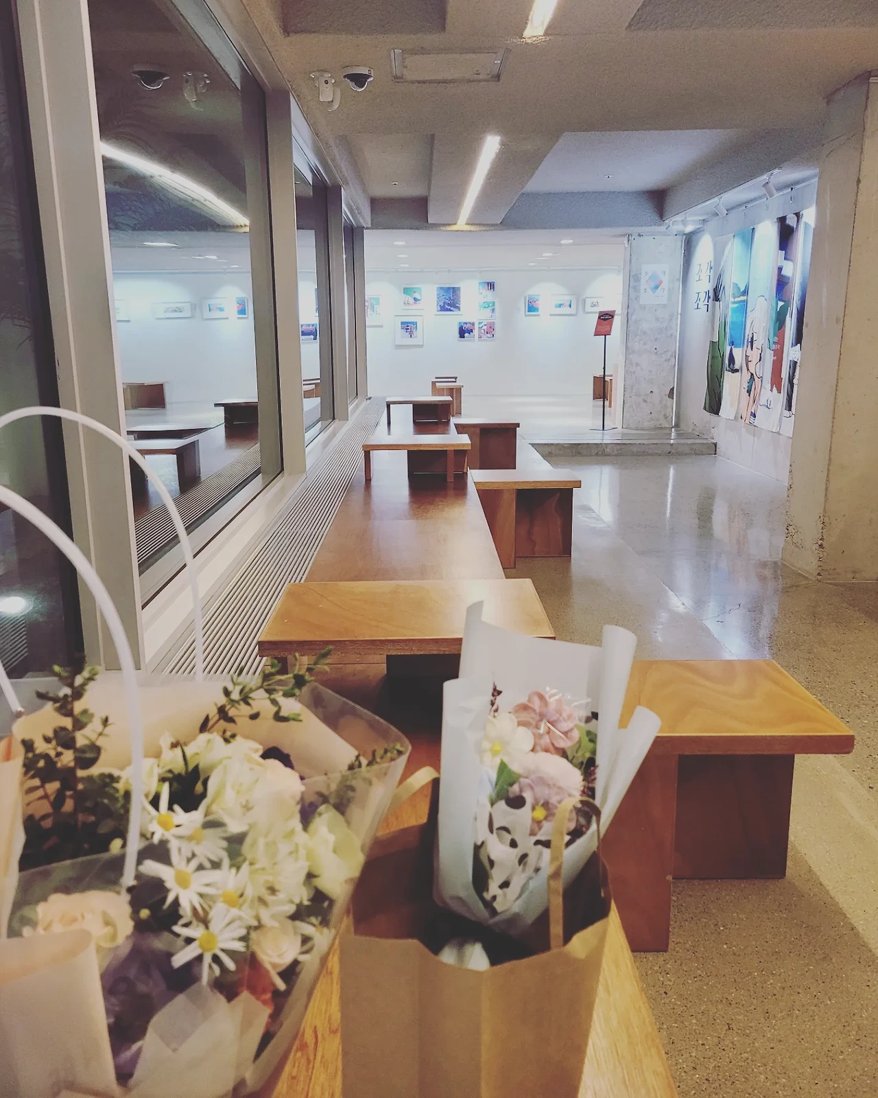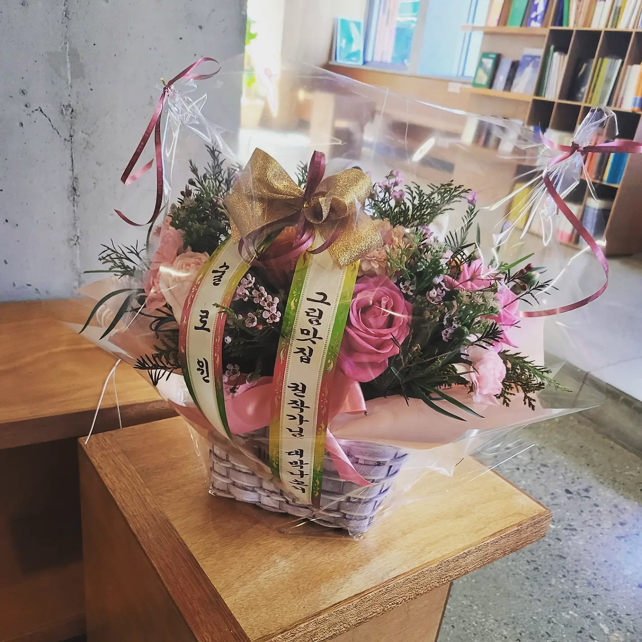 그때문인가, 원래는 더 큰 화환을 보내려고 했는데, 전시장이 크지 않다는 소식을 급 접수하고 부랴부랴 화환에서 화분으로 바꿔서 주문했다는 것이 저 크기다.