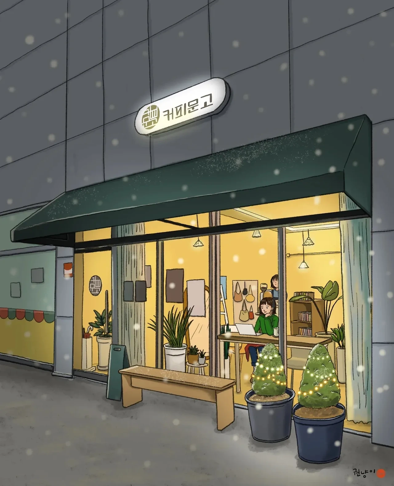 나에게 감사하게도 전시 제의를 준 서점은 용인에 위치한 커피와 책이 비슷한 비율로 존재하는 독립서점 겸 카페 <커피문고>라는 곳이었고, 전시 제안 메일을 보낸 분은 서점 대표님이 아닌 서점 북큐레이터이자 브런치 작가인 대표님의 오빠였다. 사실 메일을 받고 좀 놀랐다. 분명 나를 위해 새로 작성한 것으로 보이는 전시기획안이 첨부되어 있었기 때문이다. 연락받았던 당시 난 11월 말에 용산의 한 박물관에서 진행하는 전시 준비도 시작하지 않은 상태였고, 또 다른 서점과 전시 이야기를 구두로 진행 중인 상태라 머릿속이 뒤죽박죽이었으나, 용기를 내어서 손을 내밀어준 서점에 꼭 그 이상으로 보답하고 싶은 마음이 들었다.