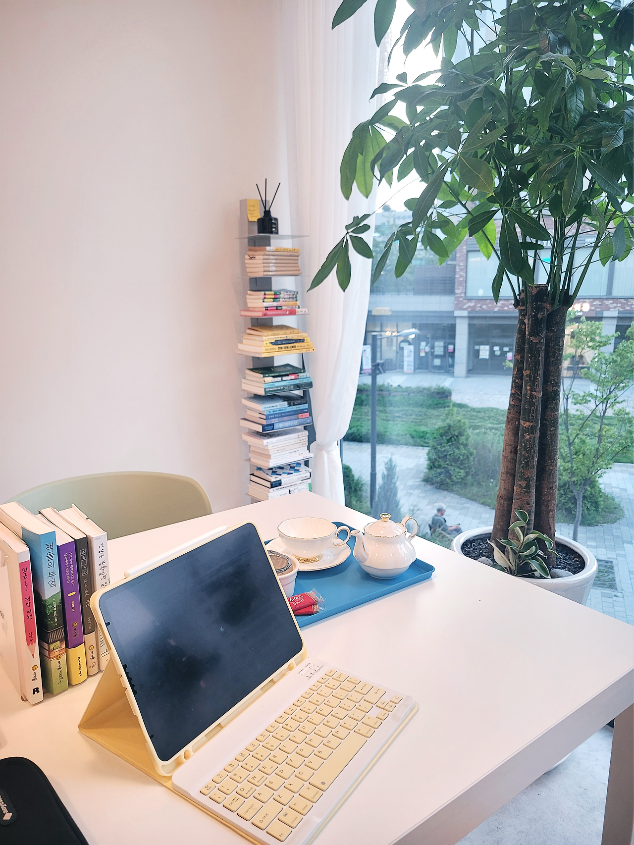 책 한 권과 커피 한 잔 값을 지불하고 창밖 풍경이 잘 보이는 곳에 자리를 잡는다.