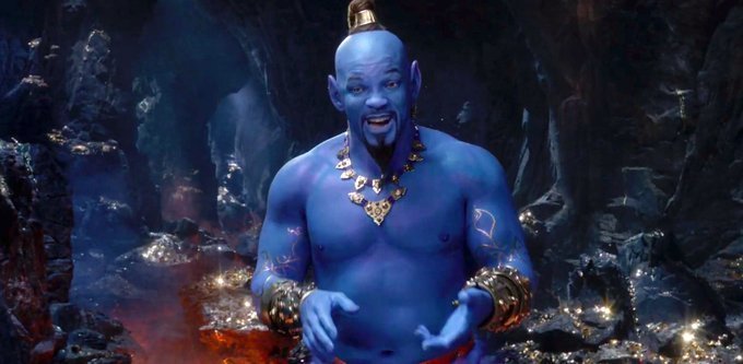 1992년 개봉한 월트 디즈니 애니메이션 <알라딘>(Aladdin)을 실사화한 동명 영화의 새 트레일러가 얼마 전 공개됐다. 이번 예고 영상에서 램프의 요정 지니 역을 맡은 윌 스미스(Will Smith)의 모습이 드디어 드러났다. 윌 스미스로서는 새로운 시도였으나 많은 영화팬이 별로라는 반응을 보이고 있다. "오리지널 지니를 돌려 달라.", "영화를 보지 않겠다.", "악몽에 나올 것 같다." 등의 부정적인 의견이 다수다. 그래도 윌 스미스가 워낙 연기를 맛깔스럽게 하니 5월에 영화가 개봉하면 재미있게 보는 관객도 많을 것이다.