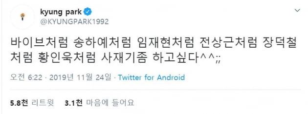 파장은 거셌다. 아이돌 그룹 블락비 멤버 박경의 한마디에 가요계가 들썩거렸다. 그는 지난해 11월 자신의 SNS에 "바이브처럼 송하예처럼 임재현처럼 전상근처럼 장덕철처럼 황인욱처럼 사재기 좀 하고 싶다."라는 글을 올렸다. 거론한 가수들이 사재기로 실시간 음원차트 상위권에 든 것 같다고 빈정댄 것이다. 박경이 언급한 가수들의 소속사는 터무니없는 말이라면서 법적 대응을 예고했다. 하지만 대다수 음악팬이 박경의 행동을 통쾌하게 여겼다. 꼭 필요한 일갈이었기 때문이다.