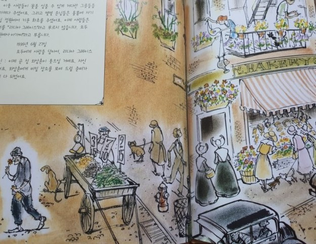 작은 여자 아이의 부지런한 손과 다정한 손길이 회색 도시에 화사한 색을 뿌려주었다.