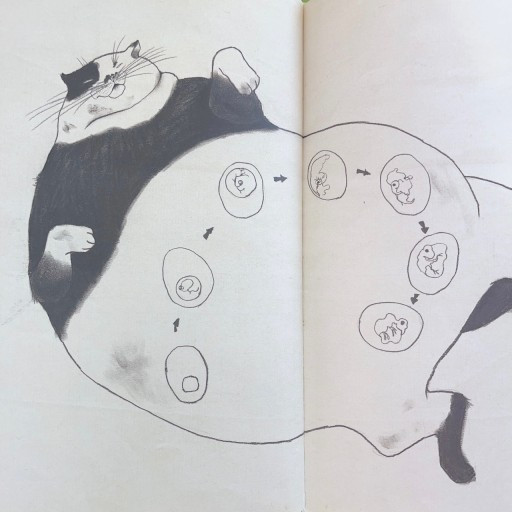 병아리가 다 자라자 니양이가 배가 아파왔다. 니양이가 생각할 수 있는 복통의 원인은 똥이었다. 자기 뱃속에서 새로운 생명이 자라고 있다는 것은 상상도 할 수 없는 일이었을 것이다.