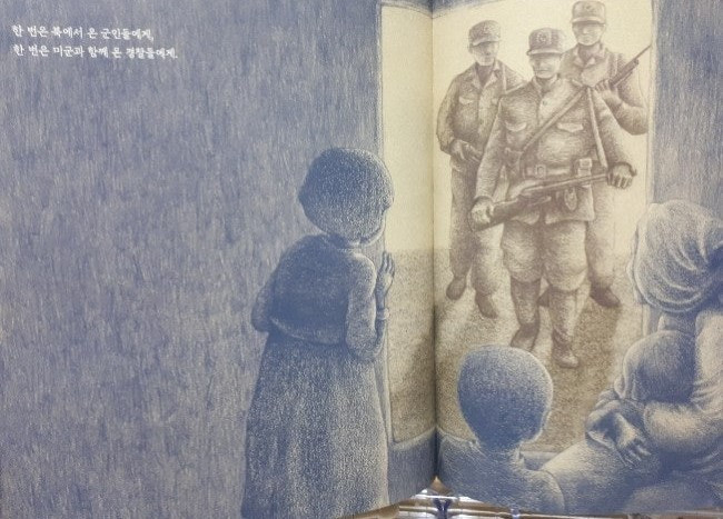 긴 시간의 역사가 사실적인 그림과 상징적인 그림 속에 짧은 글로 소개되고 있다. 일본인 지주의 집의 모습, 인민군이 억척네 집에 들이닥친 상황, 사람들이 피난을 가는 모습은 사실적으로 보인다.