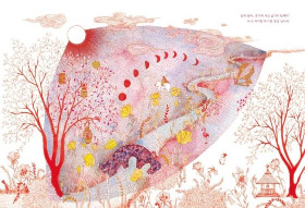 이 그림책의 그림의 많은 작품이 한국화에서 모티브를 가져왔다. 그래서 검은색으로 주로 표현하는 것이 한국화의 느낌이 더 살았을 것 같다. 그런데 빨간색으로 표현한 것은 시각적 텍스트의 상징화 같았다. 그리고 그 상징은 바로 이 그림책의 주제인 ‘여성’으로 연결되었다. 따라서 나는 여성의 월경을 빨간색으로 표현한 것으로 생각했다.