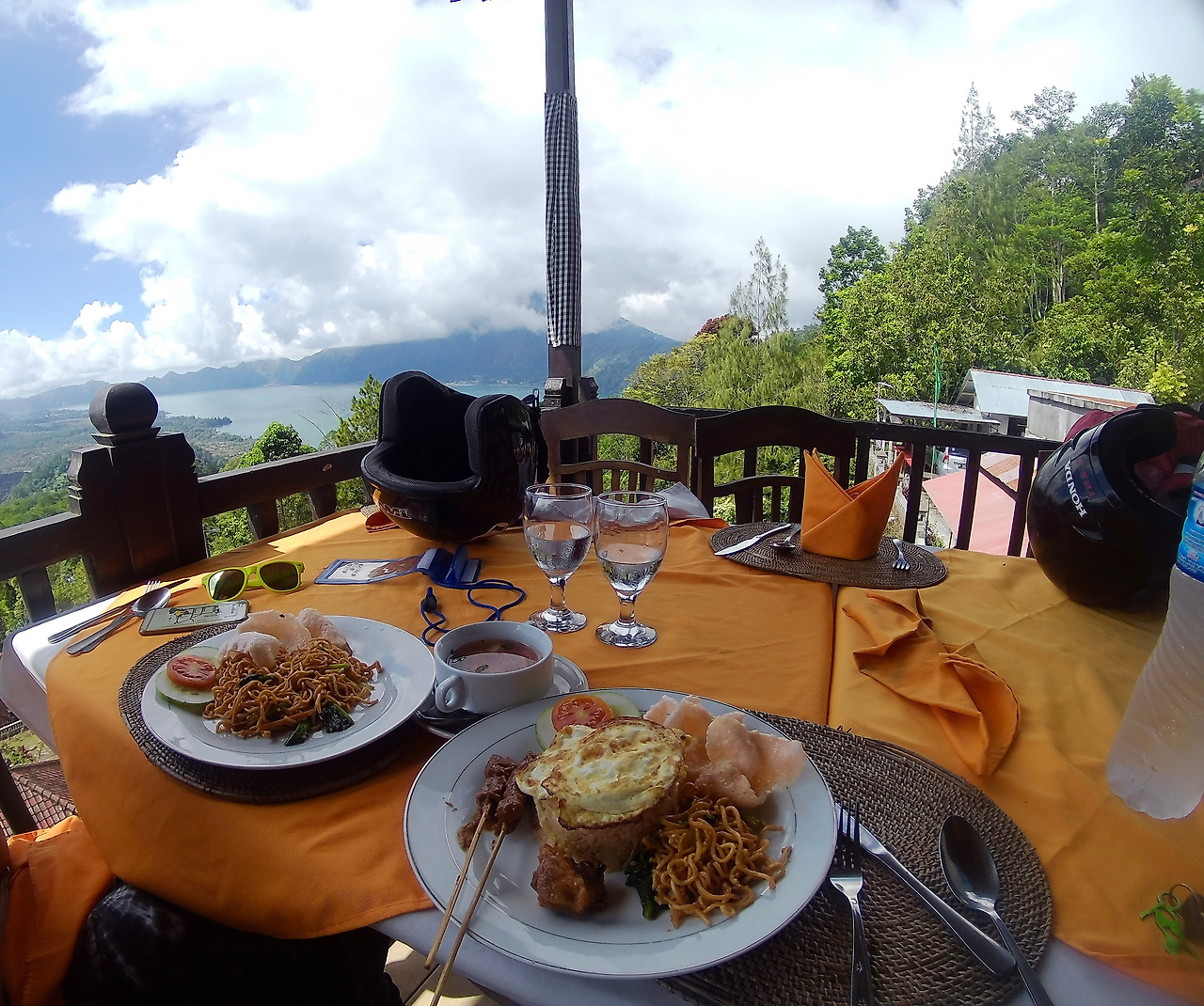 우붓에서 며칠 동안 지내면서 뜨라가와자강 래프팅도 하고, 인생에서 기억에 남을 아궁산도 다녀오고, 논뷰가 보이는 마사지 샵에서 마사지도 받은 뒤, 마침내 바이크를 빌려 배낭을 메고 낀따마니 지역으로 향했다. 택트를 닮은 작은 스쿠터였다. 길을 나서 보니 산유국 답게 한국에서는 상상도 못할 작은 주유소들이 곳곳에 있었고, 슈퍼에서 페트병에 휘발유를 담아서 파는 곳도 많았다. 우리가 가야 할 길은 꽤 높이까지 올라갔다가 내려오는 지형이었다. 바뚜르 산과 호수의 웅장함에 놀라고, 현지 남자아이들이 팬티도 안 입고 놀고 있는 평화로운 동네 바다에서 쉬기도 했다. 여행자들은 잘 가지 않는 북쪽 도시인 싱아라자의 시장도 둘러보았다. 하루 종일 바이크를 타고 달려, 밤이 되어서야 멘장안에 도착했다.
