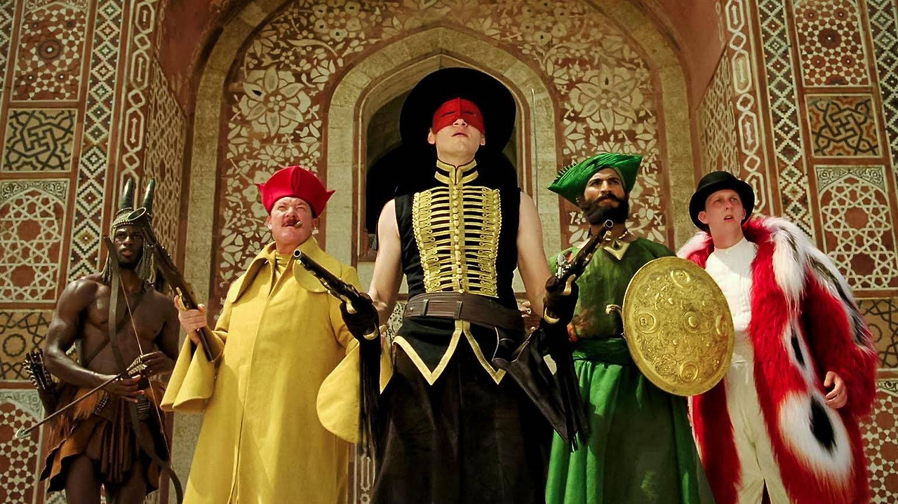 영화 후반부, 스크린을 채우는 이국의 풍경은 28개국 로케이션이라는 신화를 몸소 증명하듯 눈이 부시다. 인도 조드푸르의 푸른 도시가 펼쳐지고, 사막 위에 핀 나비 모양의 섬이 등장한다. 이시오카 에이코가 디자인한 의상들은 마치 초현실주의 거장의 그림 속으로 들어간 듯한 착각을 불러일으킨다. 강렬한 원색의 폭발은 단순한 ‘시각적 쾌감’을 넘어, 인물들의 내부 세계를 시각적으로 투영하는 장치가 된다.