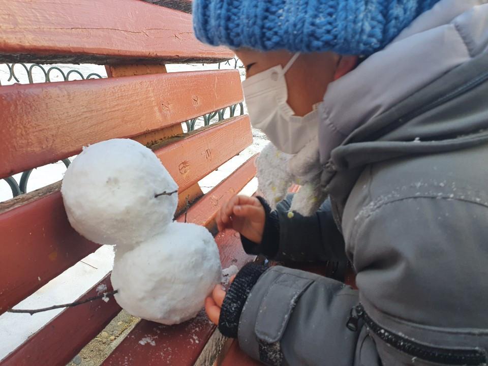 아들과 만든 머리 큰 눈사람. 21.1.7