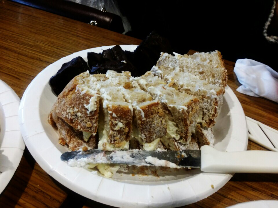 손으로 잘라먹노라면 타피오카와 빵이 분리가 된다.