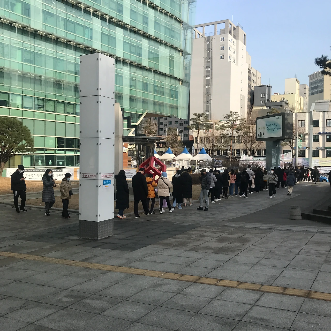 어영부영 첫날이 그렇게 지나가고 다음 날 PCR test를 위해 관할 보건소를 찾았다. 어제의 경험을 되새기며 9시에 영업 시작이기에 서둘렀지만 아직은 이동이 서툴러 고작 2분 늦은 9시 2분에 도착한 순간 경악을 금치 못했다. 이미 늘어선 줄은 건물을 돌고 돌아 긴 꼬리를 이루고 있었고 서둘러 그 대열에 합류하고 보니 이 줄은 겨우 번호표를 받는 줄이었다. 그리고 그 번호에 따라 예상 시간대에 맞춰 다시 검사장으로 돌아오거나 마냥 그곳에서 모든 대기인원들과 뒤엉켜 대기할 수밖에 없는 구조였다. 번호표를 받기까지 한 시간을 기다렸고 10시가 넘어 겨우 600번대의 번호표를 건네받았다. 안내직원이 이 정도면 한시 이후에 와야 할 것 같다는 안내에 어이가 없어하며 당황하며 돌아섰던 기억이 난다.