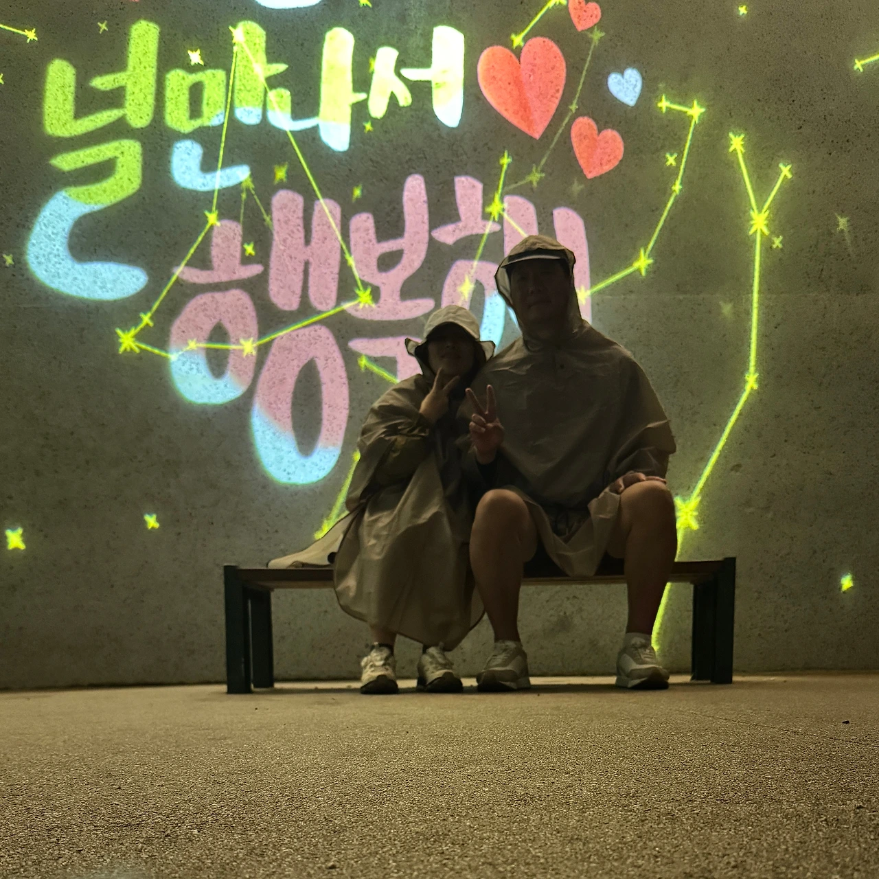 그 뒤로, 우리는 오늘까지 이 비옷을 세 번째 입었다. 오늘도 비소식이 있기에 배낭에 넣어서 출발했는데 비가 쏟아져 우린 여유롭게 판초우의를 입고 런웨이를 걷듯이 빗방울을 떨어뜨리며 걸었다. 남편의 센스에 이제는 비가 오는 날이 점점 좋아지고 있다.