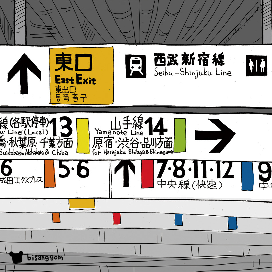 야마노테센(山手線) 신주쿠역(新宿駅)에 내린 다음 미로같이 복잡한 지하를 헤매다가 동쪽 출구로 빠져나왔어. 유명한 문구점 세카이도(世界堂)를 지나서 조금 걸으면 신주쿠교엔 (新宿御苑) 입구에 도착하게 돼. 신주쿠역에서 천천히 걸어도 10분 정도면 도착했던 것 같아.