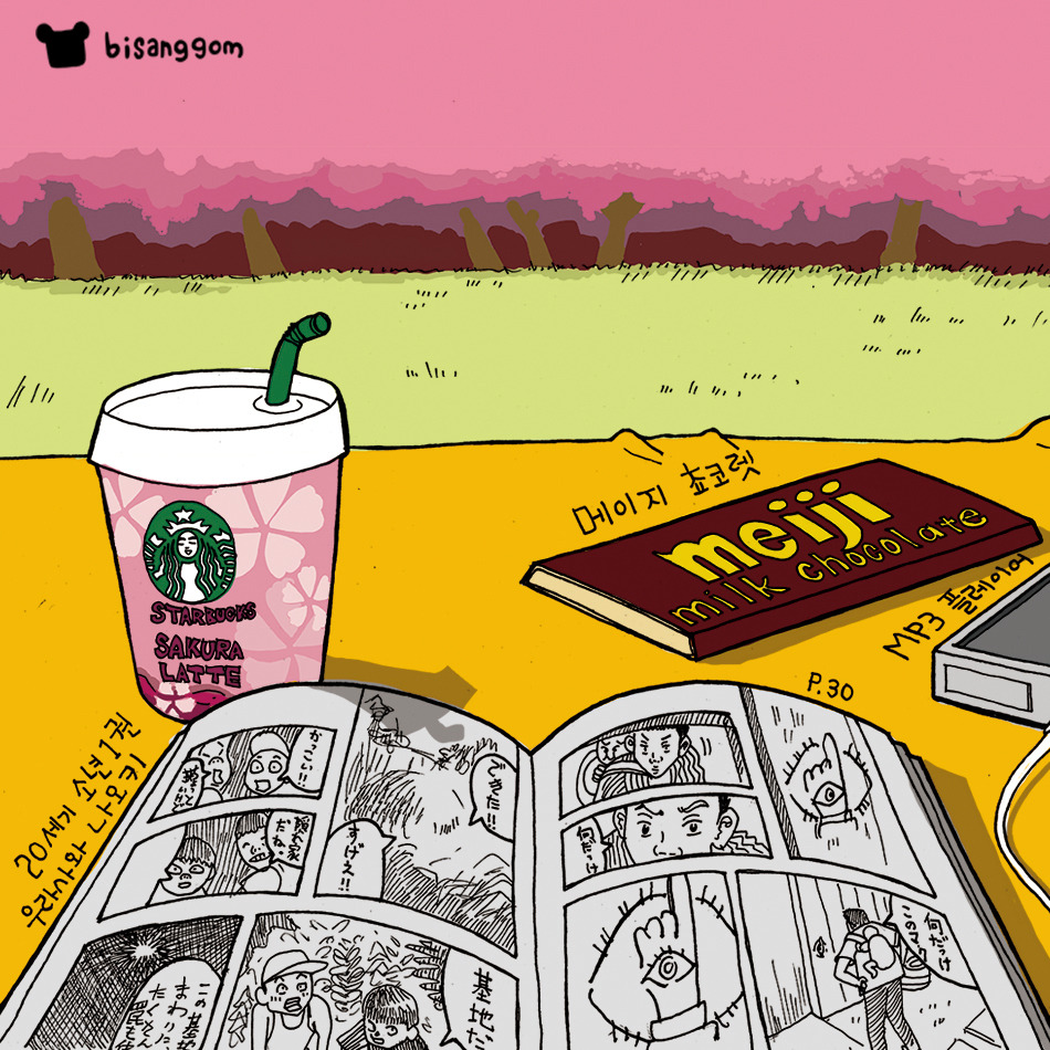 쭈뼛쭈뼛 거리면서 벚꽃 아래에 자리를 폈어. 그리고 도시락을 꺼내서 먹기 시작했어. 아침부터 움직였더니 배가 고프더라고. 꽃을 보면서 도시락을 먹으니깐 이 순간에 집중하게 되었어. 햇살은 따뜻하고 치킨과 맥주의 조합은 당연히 훌륭하고, 하얀 밥은 꼬들꼬들 맛있고. 이래저래 기분이 좋아졌어. 그랬더니 주변을 신경 쓰는 마음이 싹 사라지더라고.