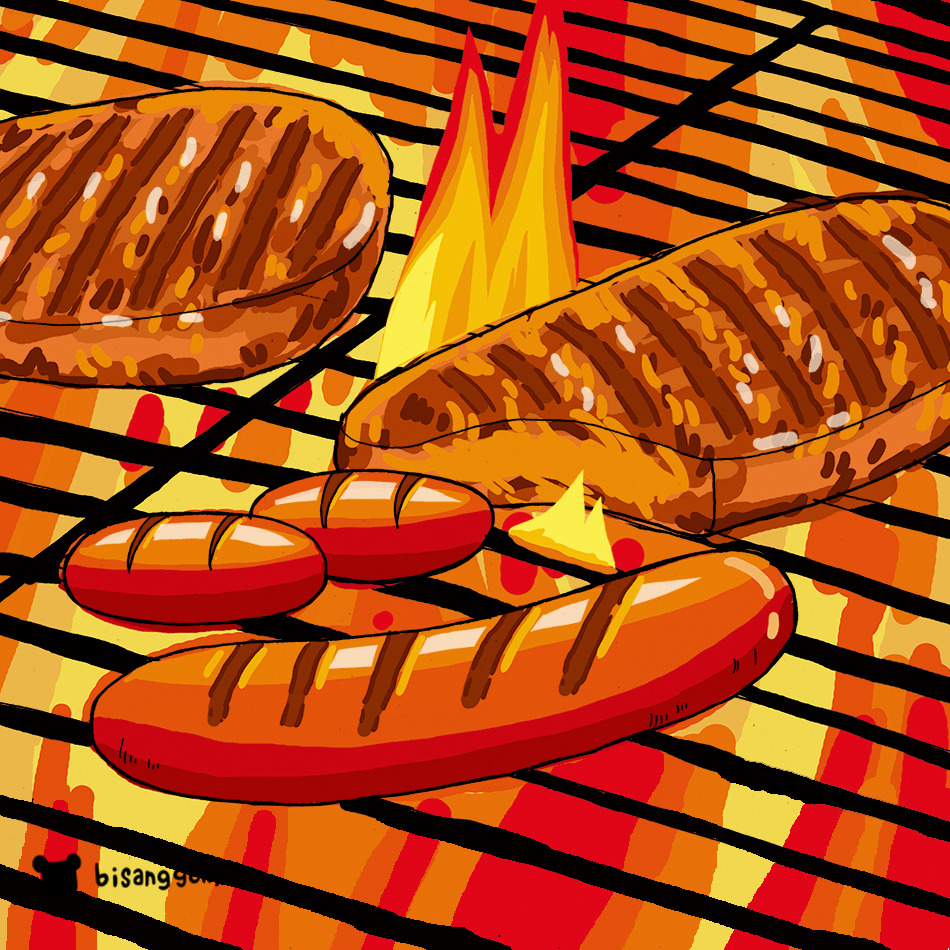 "저기는 저런 고기를 먹네. 소시지 맛있겠다."