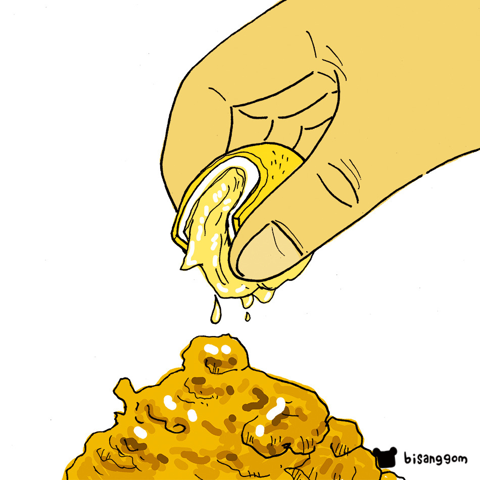 아내는 닭튀김 3개는 양이 많다고 나에게 하나를 주는데 그래서 난 닭튀김이 총 4개가 된다. 순간 아내가 너무 사랑스럽게 느껴지고 또 사랑받고 있다는 느낌이 든다.