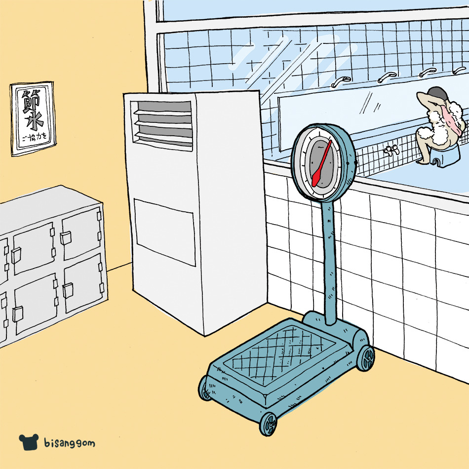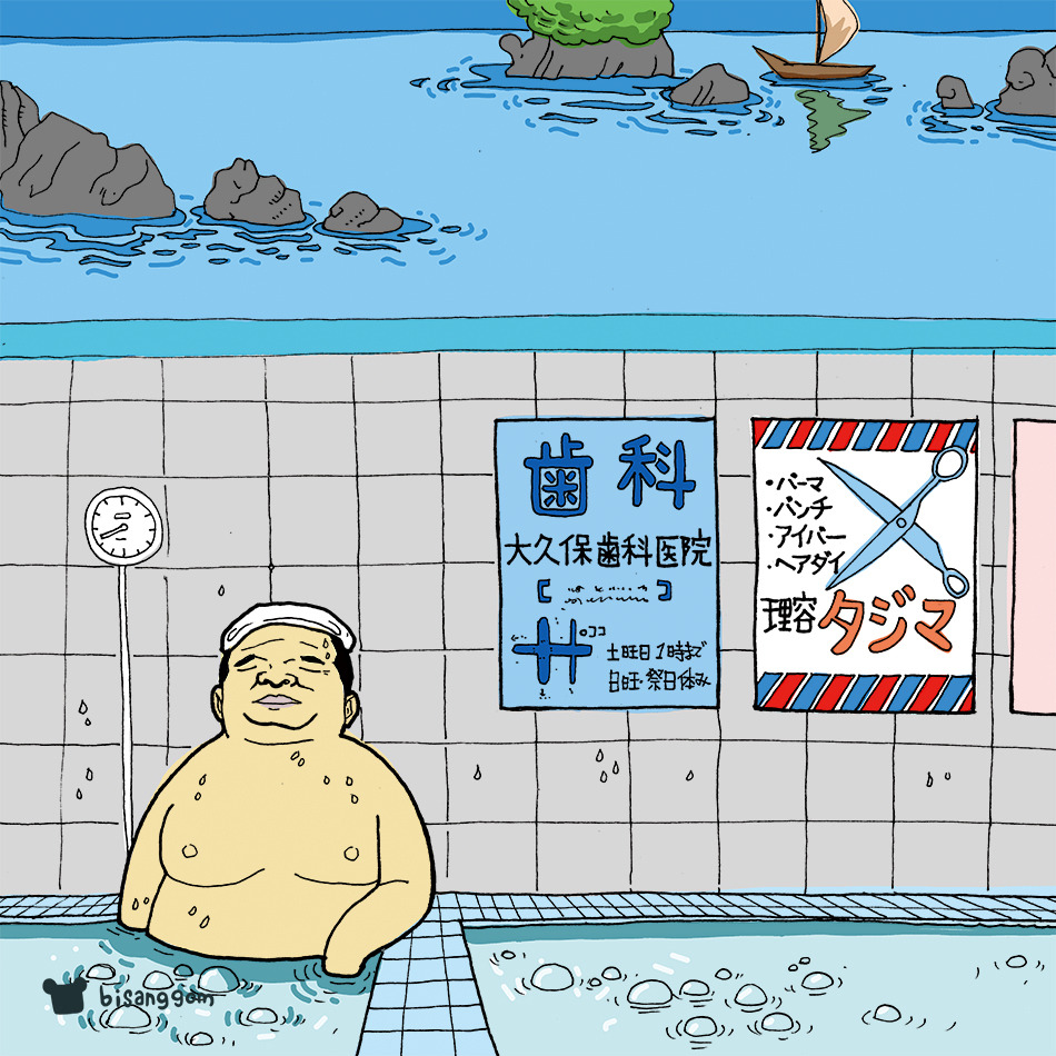 그 당시 나에게 목욕탕이란 곳은 덥고 지치고 오래 있기에는 지루한 곳이었다. 그래서 목욕이 어떻게 놀이가 될 수 있는지 이해가 안 되었다. 그런데 지금은 내가 그렇게 놀게 되었다.