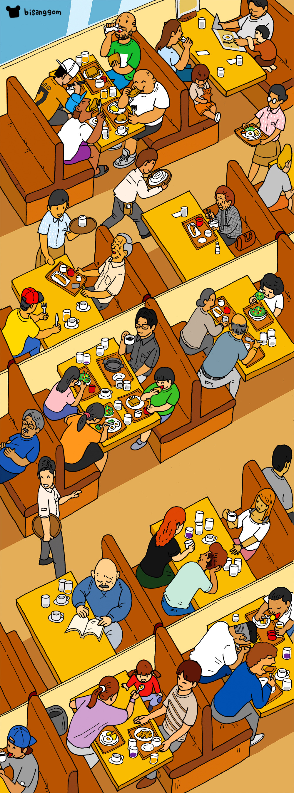휴일이라서 레스토랑에 비어있는 좌석이 거의 없다. 어린아이부터 할아버지 할머니까지 다양한 사람들이 각자의 모닝을 즐기고 있다.