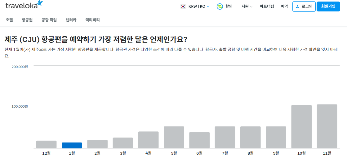 {도착지} 항공편을 예약하기 가장 저렴한 달은 언제인가요?