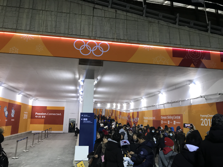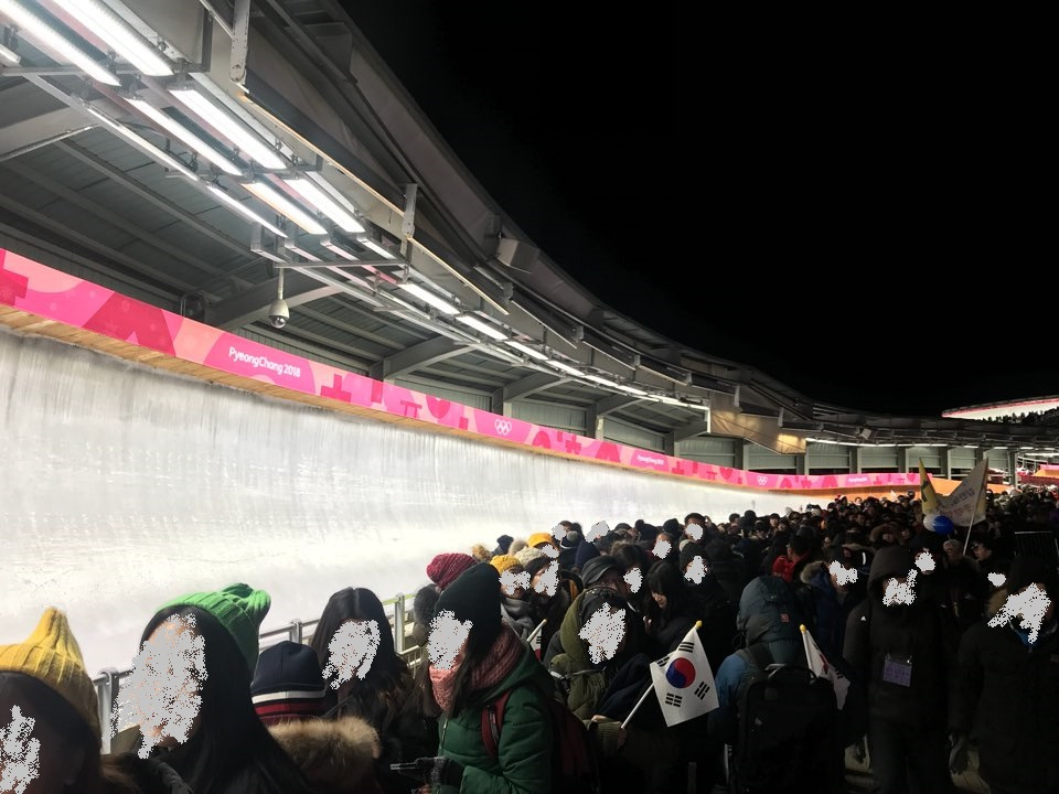 메달 시상식을 보고 나와서 셔틀버스를 타고 슬라이딩 센터로 이동한다. 솔직히 이 때 버스를 되게 오래 기다린다. 날씨도 되게 춥고 왜이렇게 오래 기다려야 하는지 불편함이 느껴진다. 하지만!! 셔틀버스가 문제야!! 형편없는 운영이야!! 하기 전에 주위를 조금만 더 둘러보자.. 셔틀버스를 오래 기다리는 이유는 무엇일까? 쉽게 생각하면 버스가 부족해서? 라고 할 수 있는데 일단 그 말은 이번 올림픽에 적용할 수 없다. 진짜 거짓말 하나도 안보태고 우리나라 전국 버스는 평창에 다 와있는 것 같다. 자원봉사자들의 안내에 따라 버스는 쉴 새 없이 들어오고 사람들이 다 타면 바로 출발한다. 그 다음 버스가 내 앞으로 오는데 걸리는 시간은 진짜 10초도 안걸리고 그 다음 버스, 다다음 버스, 다다다음버스 뭐 말 할 것도 없이 다 기다리고 있다. 그렇게 해서 버스를 타고 10분정도 가니까 경기장이 나왔다. 스키점프대 뒷 편에 있는 슬라이딩 센터 입구로 가는데... 오마이갓... 사람이 진짜 엄청 많다. 보안검사를 하기 위해서 30분은 기다렸다. 보안검사를 생각보다 엄청 철저하게 했는데..당연히 그래야 한다. 보안검사 하느라고 시간 늦어져서 입장 못한다고 불평하는건 안된다고 생각한다. 첫 째도 안전, 둘 째도 안전이다. 경기를 못보면 못봤지 보안 검사는 철저히 해야한다. 조금 아쉬운 점이라면 보안 검사로 인해 대기 시간이 길어질 수 있으니 경기장에 조금 더 일찍 도착하라는 안내를 홍보 영상이나 티켓에 조금씩 써주었다면... 어떨까 하는 생각이지만...내가 실무자여도 못했을거다. 이건..생각하기 힘들다. 솔직히..