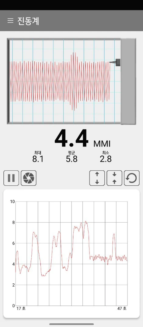 단위는 MMI (Modified Mercalli Intensity) 단위로 측정이 가능한 어플리케이션이었고,
