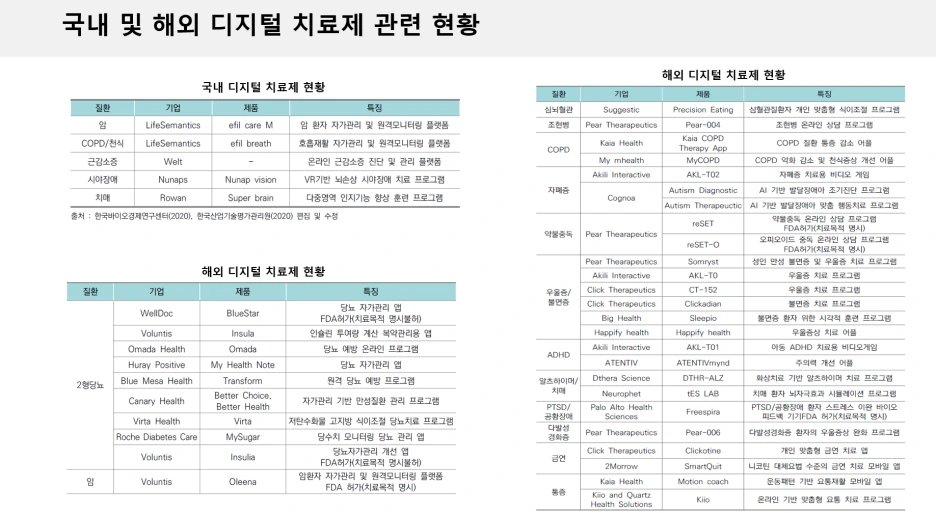 국내외 디지털 치료제 제품 현황