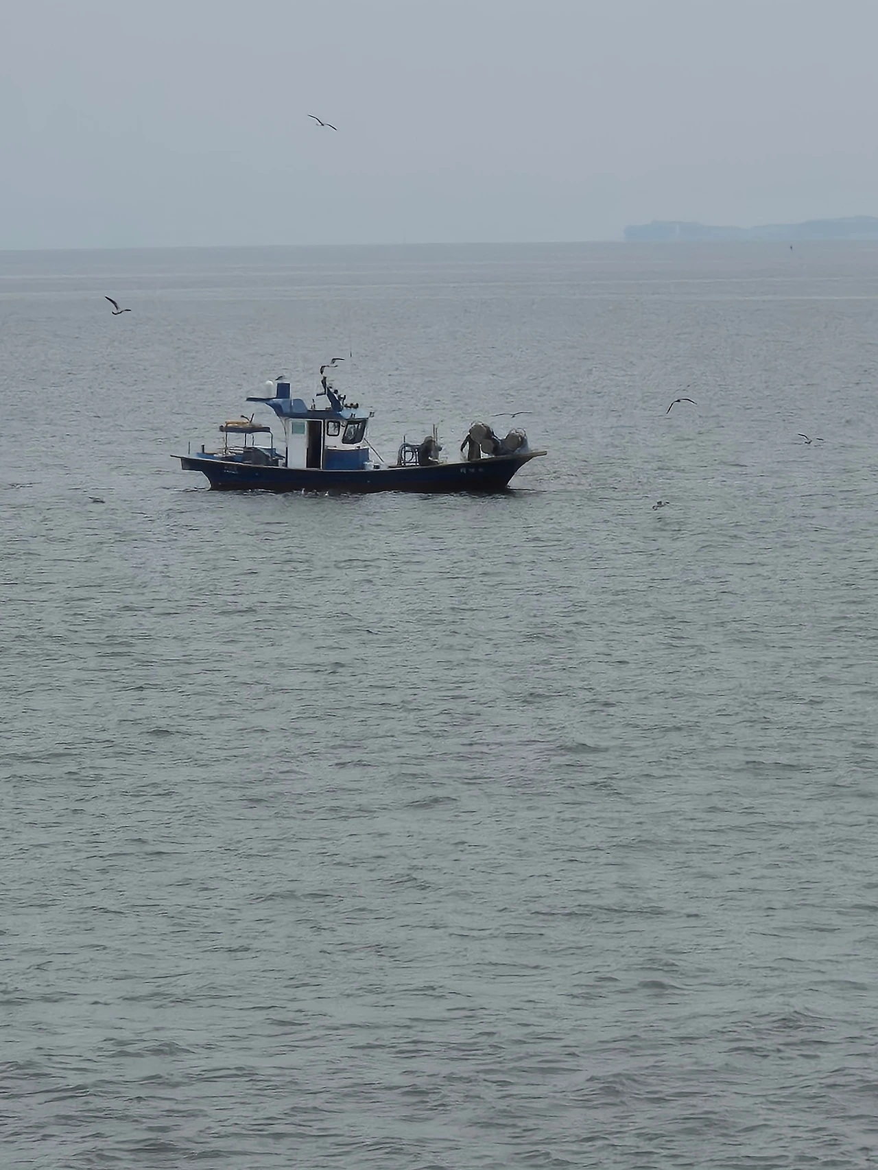 간월도에서 한참을 멍 때리며 바다를 바라보며, 전어를 잡고 있는 배 한 척을 사진에 담으며 서산 여행의 마침표를 찍는다