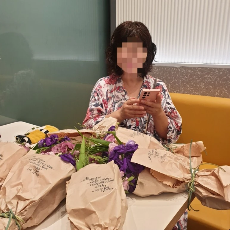 다양한 모습을 추구하는 아름다운 그녀들. 정신이 여유로운 낭만가, 정의로운 운동가, 생활 전선에서 꿈을 키우며 N잡러를 꿈꾸는 현실가. 각자의 자리에서 멋지게 살아가는 그녀들의 이야기는 사랑스러웠다. 그녀들과 나누는 이야기 속에서 나를 들여다보고 상상하며 용기를 얻었다. 우리는 그렇게 서로에게 희망의 말씨 앗을 심어주었다. 꽃 선물과 좋은 글귀가 담긴 양말선물을 받고 합평회를 마치며 백일백장 2기에 대한 이야기를 나눴다. 배꼽시계가 자꾸 엉덩이를 들썩이게 하였다. 자리를 떠날 때쯤 커피숍에는 단 한 명만 자리하고 있었다. 우리는 서로 눈을 마주치며 다음 장소는 여기라고 눈도장을 찍었다.