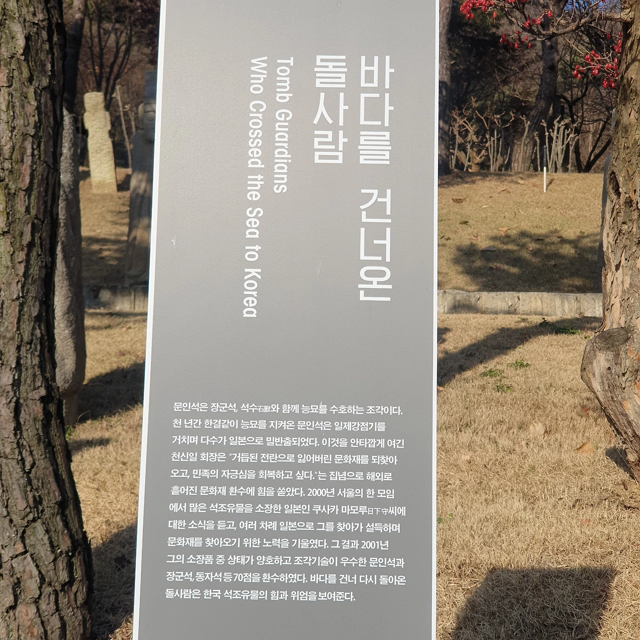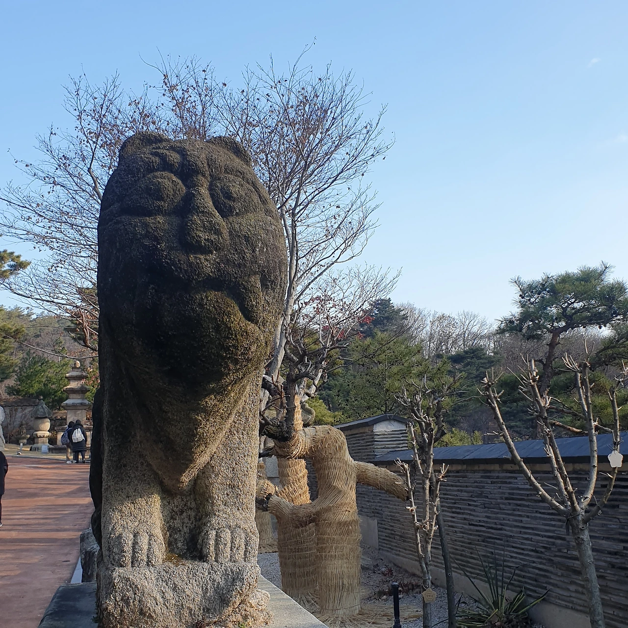 드디어 12월 2일. 오래 기다리고 준비한 만큼 떨렸다. 한성대 입구에서 버스를 타기 위해 신호를 기다리는데, 하늘은 파랗고 버스도 신호대기에 걸려 우리를 기다렸다. 첫 시작부터 순조로웠다. 처음 간 곳은 성북동의 맨 끝자락에 있는 우리 옛돌 박물관이었다. 작품을 보기 전‘돌이 뭐가 그리 중요하다고 박물관까지 만들지'라고 생각했다. 우리 것을 지키기 위해 바다를 건너온 돌사람들. 고향에 돌아온 듯 표정이 온화했다. 눈과 코, 곳곳이 닳아 뭉개졌지만 선조가 지키고자 한 삶의 철학과 지혜는 고스란히 전해졌다. 돌박물관 입구에 늠름하게 서 있는 범의 둥근 눈과 코는 정겨워 웃음이 나오기까지 했다.