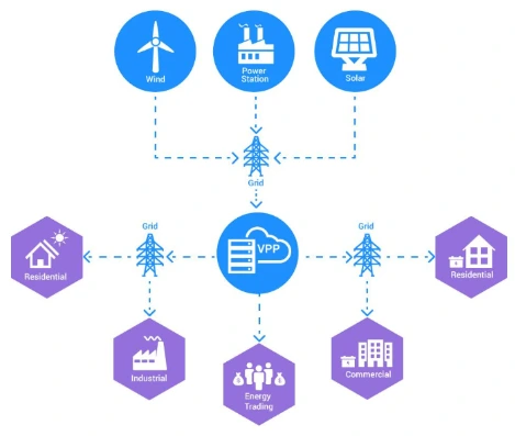 가상발전소는 여러 곳에 산발적으로 흩어져있는 소규모 자가 발전 설비, 예를 들면 가정의 태양광 발전 설비나 전기자동차의 배터리 등 전력 수요를 중앙의 플랫폼에서 통합적으로 예측 제어하여 마치 하나의 발전소에서 통제하는 것처럼 구현하는 기술을 일컫는다.