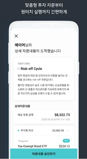 개인적인 희망사항으로, 에임이 그들의 운용 알고리즘을 적어도 투자자에게는 공개하면 좋겠다. 이 글을 작성하면서 에스더가 어떤 알고리즘을 거쳐 자문을 하는지 궁금해서 검색해봤는데, 구체적인 정보를 찾을 수 없어서 아쉬웠다. 외부인에게는 공개하지 않고 고객에게만 공개하는건지는 아직 이 서비스를 직접 사용해보지 않아서 모르겠지만, 아래 예시 사진을 보았을때 시장 분석 정보만 볼 수 있고 "어떻게" 분석했는지 확인할 수 없었다. 그게 영업 비밀이라서 공개하지 않은 걸 수도 있겠다. 하지만 내가 에임의 고객이라면 알고리즘의 기초적인 운영 과정을 알아야 에임의 투자자문이 도출된 경위를 이해하여 더 안심하고 자문을 따를 수 있을 것이라 생각한다. 그러니 AIM도 고객 입장에서 서비스를 바라보고 알고리즘이 기본적으로 어떻게 구성되는지 제공하여 서비스 신뢰도를 높인다면 더 믿음직한 자산관리사로 거듭나리라 예상한다.