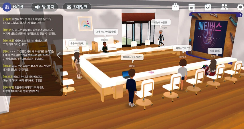 제페토 내에서 이용자들이 모여 게임을 즐길 수도 있지만, 메시지를 주고받으며 회의를 진행할 수도 있다. 굳이 사무실에 모일 필요 없이 회사 동료들을 만날 수 있는 것이다. 현재 한국에 전 직원이 메타버스로 출근하는 회사가 있다. 부동산 플랫폼 '직방'은 강남역에 있던 본사를 '메타폴리스'로 이전했다. 메타폴리스는 직방이 자체적으로 개발한 메타버스 공간으로, 직원들은 네트워크를 통해 회사로 출근한다.
