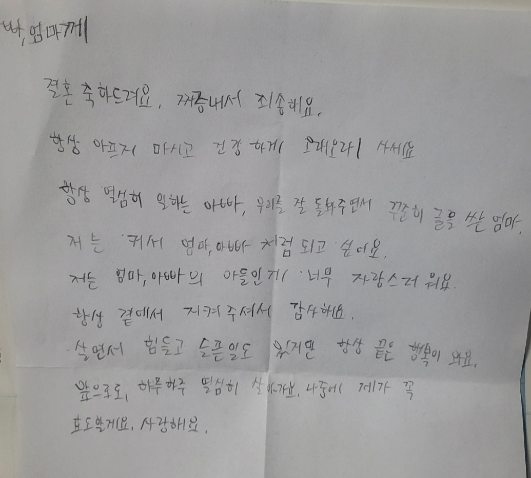 결혼기념일 막둥이가 쓴 편지, 아가 예쁜 삼남매