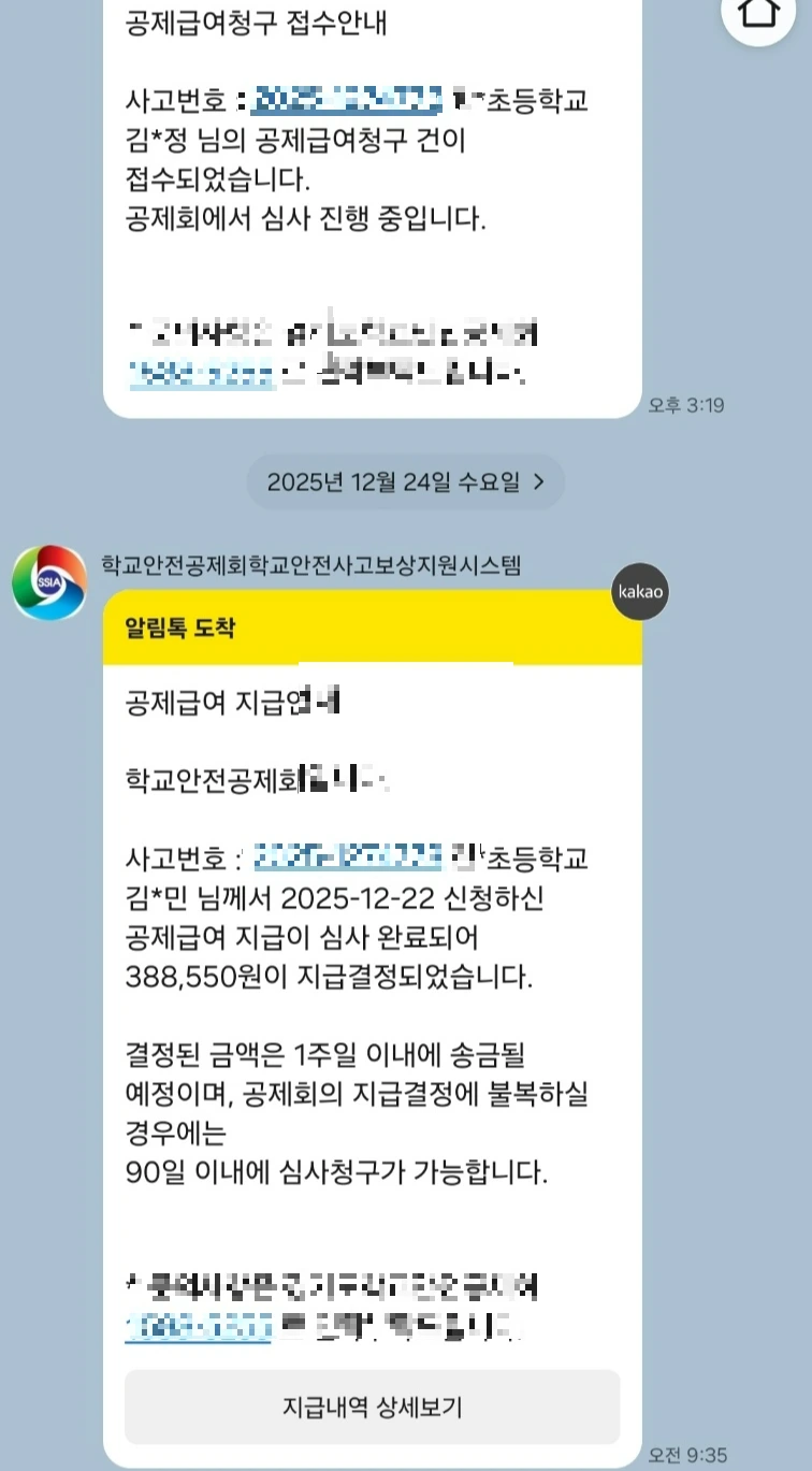 그날 담임선생님께서 다시 연락을 주셨다. 학교에서 다친 경우 학교공제회 보험이 적용된다는 이야기였다. 이미 신청은 해두었고, 며칠 안에 연락이 오면 보호자가 직접 접수하면 된다고 했다. 치료비의 상당 부분은 보상이 될 거라고 덧붙였다. 아이를 다치게 한 아이가 분명 있는데 학교 보험으로 처리된다는 사실이 처음에는 조금 낯설었다. 하지만 책임을 가르는 일보다, 상황을 더 키우지 않는 선택이 지금으로서는 가장 현실적인 답이라는 생각이 들었다. 저녁 무렵, 물병을 던진 아이 어머님에게서 전화가 왔다.