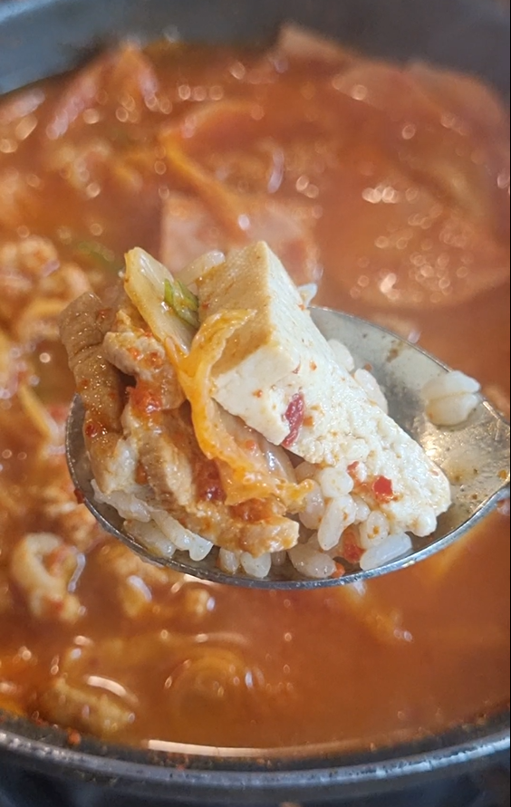국물 맛이 시원하고, 깔끔한 돼지고기와 두부가 들어간 김치찌개는 국내산 종가집 김치로 만들었다고 합니다.
