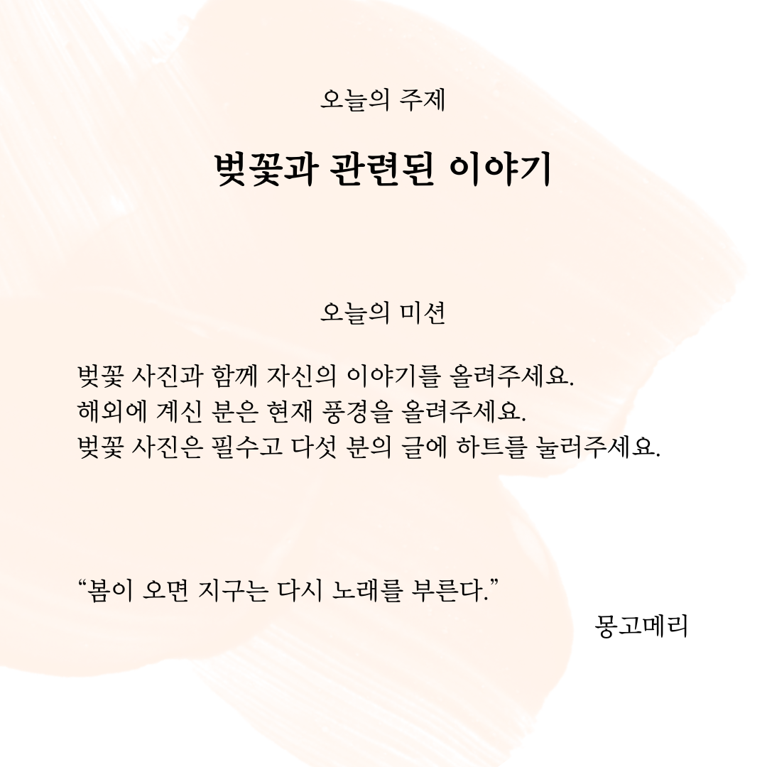 오늘 아침엔 운동화 끈을 바짝 잡아매고, 모자를 눌러썼다. 벚꽃이 내년을 기약하기 전에, 꽃잎이 소리 없이 떨어지며 이별을 고하기 전에 사진과 영상에 담고 싶다. 마치 다시 만날 수 없을 것처럼, 짙은 아쉬움을 품고 이 시간을 함께하다 보내고 싶다.