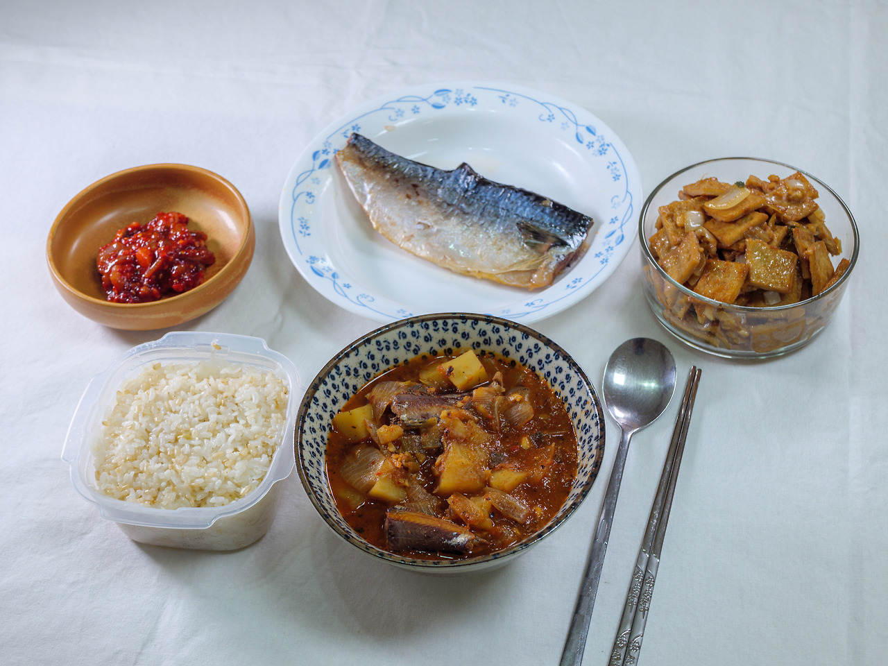 다섯 번째 끼니 - 생선구이, 꽁치찌개, 어묵볶음, 낙지젓