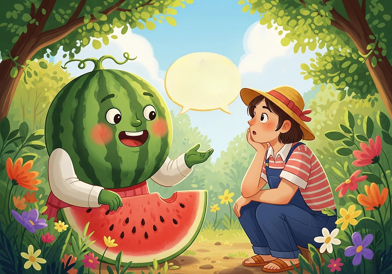 “너는 겉모습만으로 나를 판단하려 하는구나. 물론 나의 줄무늬는 오랜 시간 햇볕을 받으며 성장해 온 흔적이고, 매끈한 표면은 싱싱함을 자랑하는 표지일 수도 있지. 하지만 정말 중요한 것은 나의 속에 있어. 얼마나 붉고 달콤한 과즙으로 가득 차 있는지 그것이 바로 네가 느끼는 나의 진정한 가치지.”