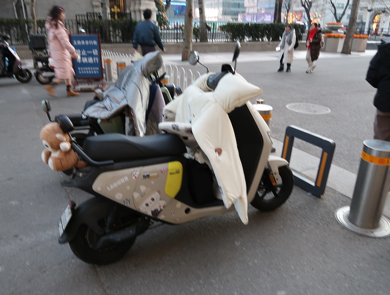 오는 길에 보니 북경 시내에는 스쿠터와 오토바이, 전차와 승용차가 모두 다닌다. 스쿠터가 아주 많다. 날이 추워서 스쿠터 손잡이부터 무릎까지 가릴 수 있는 얇은 이불이 스쿠터마다 끼워져 있었다.