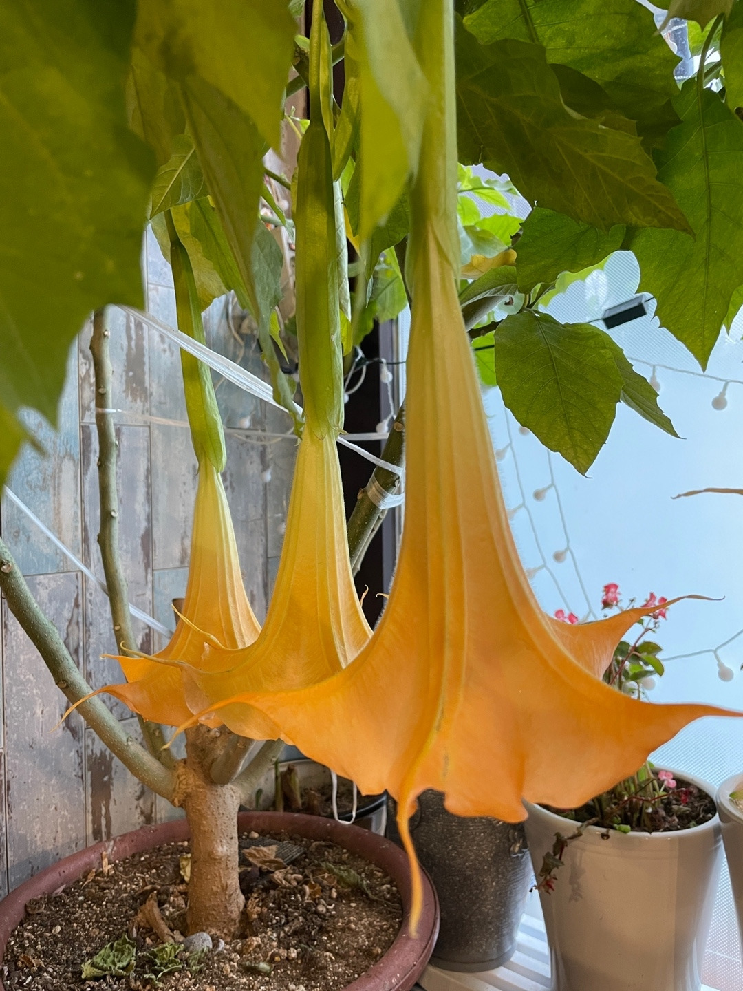 땅바닥을 향해 고개를 떨군 연노랑 꽃을 보니 향이 위로 치솟는데 졸립고 피곤한 눈과 코와 귀와 입까지 오감을 활짝 열어주며 굿모닝 해주었다. 우아한 연노랑 자태에 이리보고 저리보며 조식 호강을 했다.