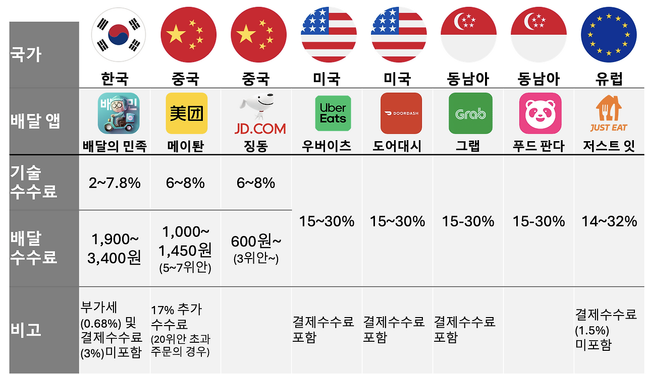 오늘은 국가별 배달앱 수수료와 기타 비용을 분석해 보겠습니다.