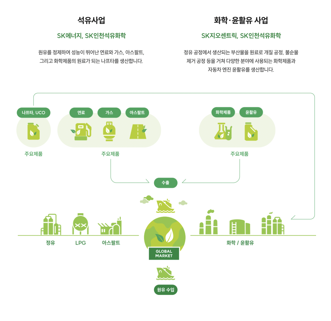 국내 정유사는 해외 원유를 수입한 후 정제 및 가공하여 다양한 석유화학 제품을 판매를 하는 사업 모델을 가지고 있습니다. 이를 정유사의 벨류체인을 따라 탐구해보고자 합니다.