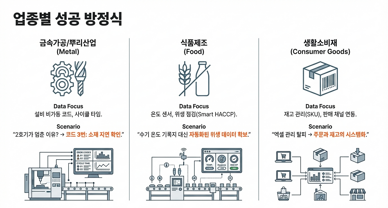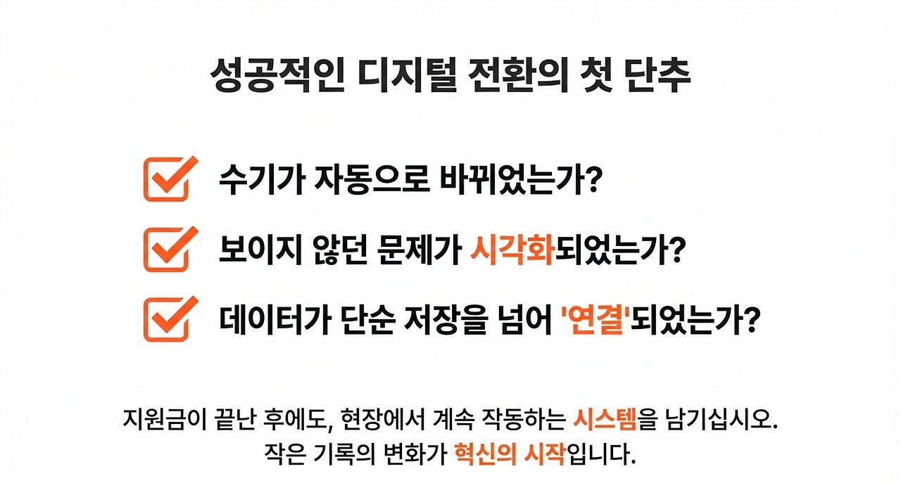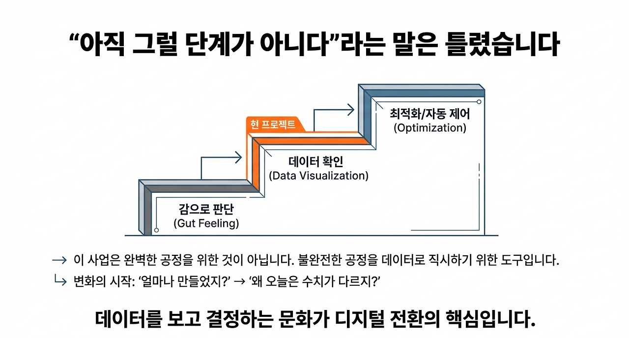 - 한 공정이라도 “수기로 적던 기록이 자동으로 바뀌는 순간”을 만들어야 한다